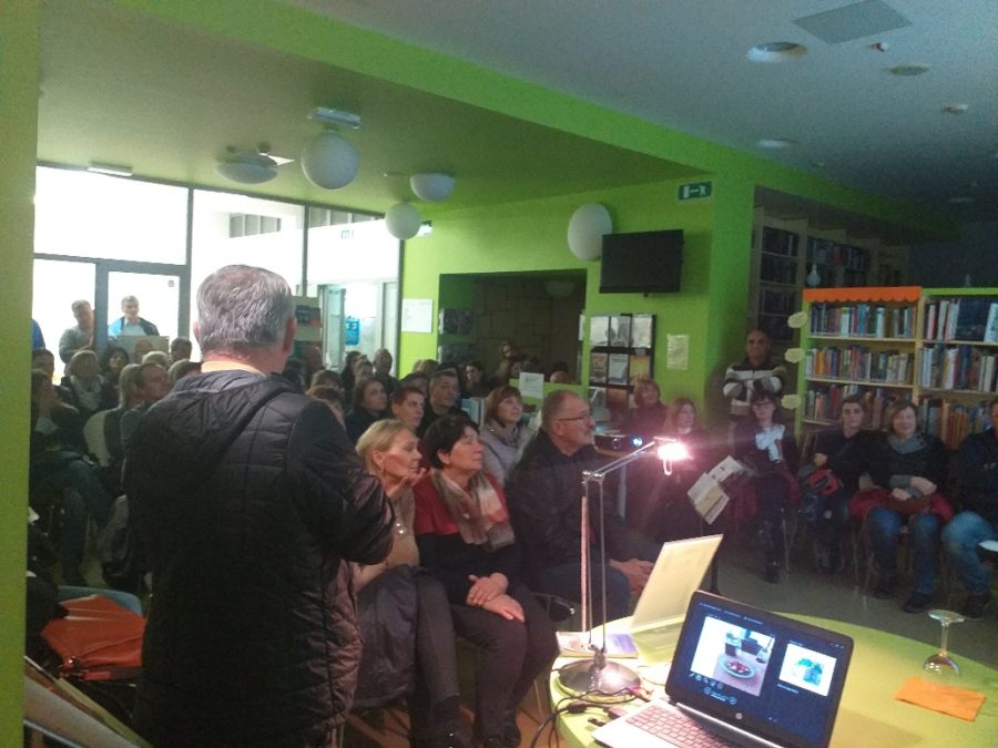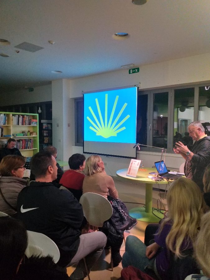 U prepunoj Gradskoj knjižnici Novigrad-Cittanova planinar i hodač Ljubo Žaja 14. studenog 2019. govorio je o svom putu od Saint Jean Pied de Porta do Santiaga de Compostele i Finisterre, odnosno o Caminu de Santiago.